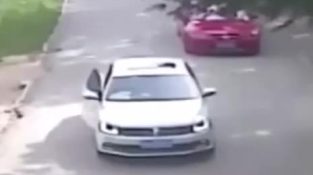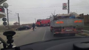 Romania 2020 : a train conductor stops in the middle of the road to get a coffee….