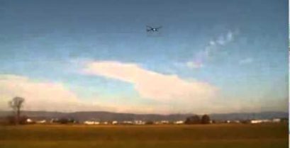 This is an unmanned helicopter with four propellers known as quadcopter. With a few changes in the motor and a bigger battery, looks like literally like a flying saucer.