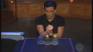 The magician Jason Latimer performs the well-known trick with balls and glasses, but with his own way.