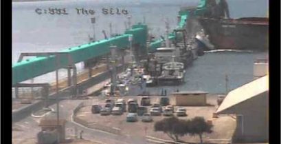 October 8, 2010: Kamea records security huge merchant ship Grand Rodosi to Rams small Apollo aleieytiko S, which was moored at the Dock Port Lincoln in South Australia.