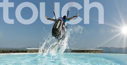 The professional pilot in Jean-Baptiste gliding Chandelier, flies over the island and the French Alps by doing some extreme stunts.