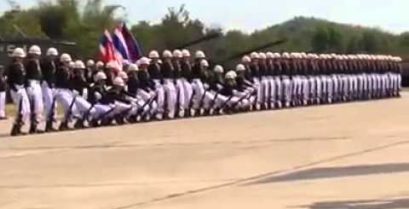 50 soldiers from the body displays the Thai Navy, make a spectacular run of synchronized their movements, during the parade of the armed forces.