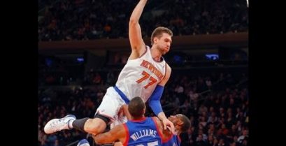 So believing for a moment of the New York Knicks basketball player Andrea Bargnani, who saw Michael Jordan and attempted to make a very ambitious nailing. Fortunately not injured.