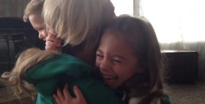 Parents announce their son and daughter, that their mom is expecting a baby.