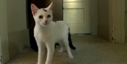 The Thumper, a kitten that was born with a rare neurological disorder, learns to walk again using a special trolley.