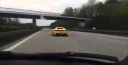 Tuned Audi S3 comes up behind a Ferrari 458 on German Autobahn. The Ferrari tries to outrun it.