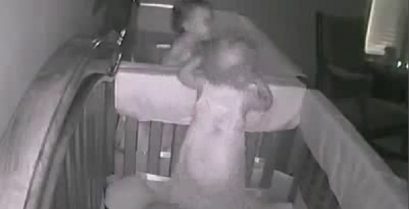 Babies are in full readiness when mom comes into the room to check if they have slept.
