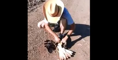 A young Hawk attacked a snake (bull snake), but the prey turned against Hunter and began to wrapped around his body. Watching the predator in the middle of the road, a man intervened […]