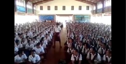 A student undertakes to give pace in his school's choir, the city of Apia Samoa. Students sing a religious hymn.