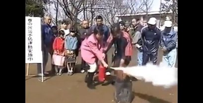 A journalist in Japan ekapideyetai to flameout with fire extinguisher. He doesn't do very well...