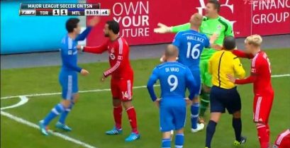 During the football match between Toronto and Montreal Impact in Canada, goalkeeper Joe Bendik of Toronto makes a miracle and heals the player Felipe Martins from a serious (?) ankle injury.
