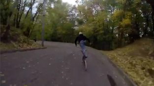 The cyclist Nikita Kovalyk descends the Hill Vorobyovy in Moscow Russia, While standing up on his BMX. Music: Metallica – “The Unforgiven III”.