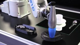 Inverting a stretchy silicone cover, the company's FlexShapeGripper Festo robot can pick up, to collect and convey a wide range of objects without the need for conversions.