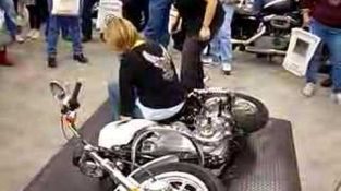 A lady explains how to lift a dropped or tipped over bike, this was at the cleveland bike show at the ix center
