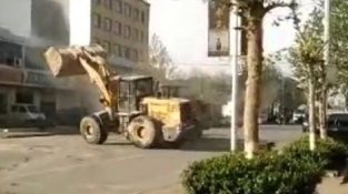 Dozer operators fighting for a road construction contract in China. Machines collide violently and one of them ends up overturned.