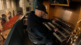 Musician David Robertshaw plays composer Hans Zimmer's 'First Step' from the film 'Interstellar', in the organ of the Church St John Rastrick in England.