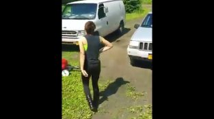 Idiot girl wears dog shock collar challenge TRENDING redneck.