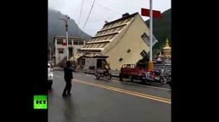Caught on cam: Building collapses into river after heavy rains in Tibet