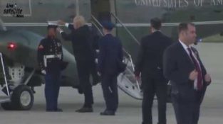 President Trump Replaces Blown Off Marine’s Hat then Blows off Again