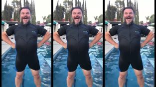 The actor Jack Black shows us how one can emerge dramatically from the water, like a superhero. The technique naturally also includes playing the video... in reverse.