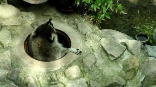 A raccoon in the city's Zoological Park in Nagano Japan, He has found the perfect hideaway.