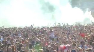 England fans in Hyde Park celebrate Kieran Trippier’s semifinal goal v Croatia
