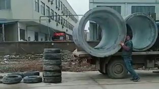 This worker has no special equipment to unload a large concrete pipe, so using his own method. Pushing the tube from the trailer on two stacks of six well mounted resiliently, […]
