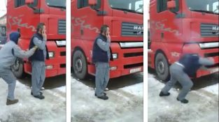 In Bosnia, a man lights a crack and puts it in the pocket of his colleague, While he talks on the phone.