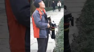 Somewhere in China, a man identified with the ultimate camera for Asian tourists. for stabilization, It has a stock of a rifle like this.