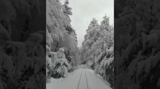 In Ajaccio Corsica, the driver of a train captures the wonderful scenery as it travels through a snowy forest.