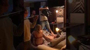 The funny moments during the filming of erotic scene in a movie, where the camera should record footage from a particular perspective.