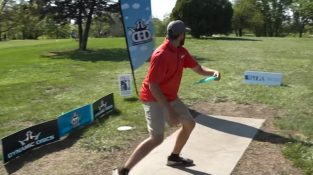 The Brian Earhart achieves its target with the first shot in the game throwing frisbee Glass Blown Open 2019 in Kansas.