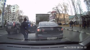 City Penza Russia, Both drivers will Fight wearing suit and tie, for a confrontation on the street.