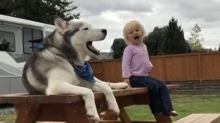 Husky imitates a girl screaming