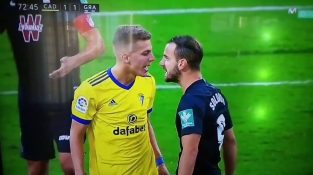 Soccer player Iván Alejo leaves on a stretcher, after a brutal touch by Roberto Soldado's opponent. The incident happened during a match in the Spanish championship on October 4.