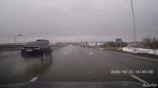A highway accident in Kazakhstan, as the driver was moving at high speed on the icy road.