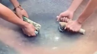 A woman records a piece of wood floating on the surface of the water, on a beach in Mazatlán, Mexico. But a wave will reveal that it is actually a crocodile.