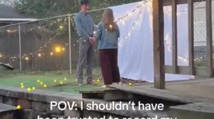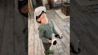 Absorbed in a virtual reality game, a small child will take a very bold leap.