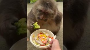 A macaque is very picky about the food offered to it by a human.