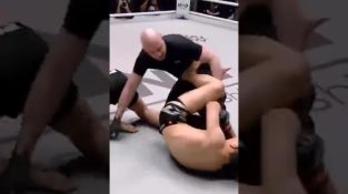 During an MMA fight, an athlete gets knocked down and then grips on the wrong foot, that of the referee.