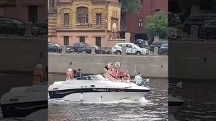 A boat passes under a low bridge