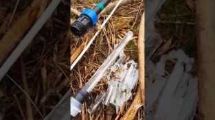 In the Karelia region of Russia, a water pipe is turned into an ice machine.