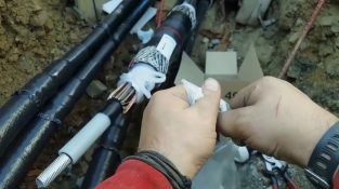 The job of a high voltage electrician, as it installs an interface between two large 20 kV cables. The complete installation of the cable took 5 hours.
