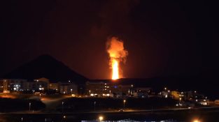 May 2, 2021 in Reykjavik, Iceland, the townspeople had the opportunity to enjoy this view, when the Geldingardalsgos volcano began to gush two large lava rivers.