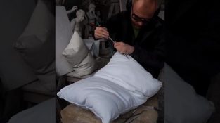 Norwegian sculptor Håkon Anton Fagerås carves cushions on marble so well, that look soft and light.