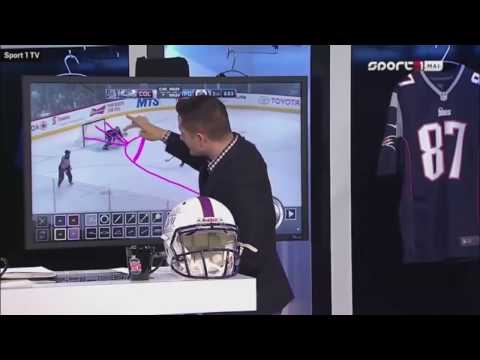 Un analista deportivo utiliza la tecnología para analizar un partido de la NHL (liga de hockey sobre hielo) un canal húngaro. Desafortunadamente, el resultado final lo delata...