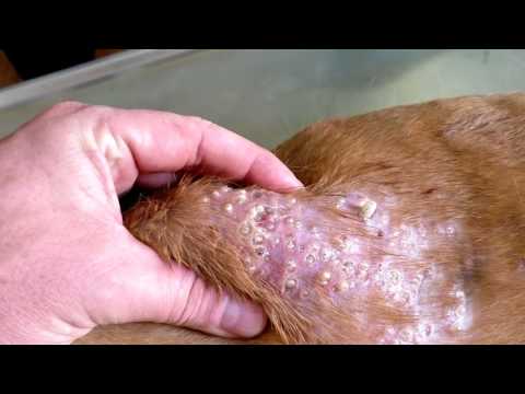 En la clínica veterinaria de Touray & Meyer en Gambia, un veterinario ayuda a un perro infestado con gusanos de cayor. Presionando la piel del animal, el veterinario saca las larvas. El gusano del cayor es una larva de la mosca. Se colocan en un host (el perro, el gato, la rata y el mono) para desarrollar allí. Es rampante en la región subsahariana de África. Cayor es el nombre de una región de Senegal particularmente infestada.