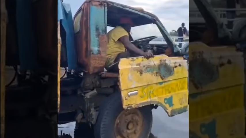 En algún lugar de África, los trabajadores transportan sus mercancías en un camión muy viejo. El camión desvencijado parece que se va a derrumbar en cualquier momento. Pero es completamente funcional., aunque necesita algunas intervenciones durante la duración del viaje.