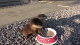 En el Zoo, Una nutria encontró el iPhone de un visitante en el agua, y estaba tratando de romperlo pensando que es un caparazón.