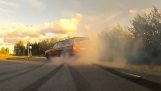 Un inteligente con Toyota Paseo motor de 1.500 cc (90 CV) contra un Mustang Shelby GT-500 (660 CV). Si viste al final pierde el smart para la décima carrera, Después de que sufrió daños a su correa del motor después de Souza.